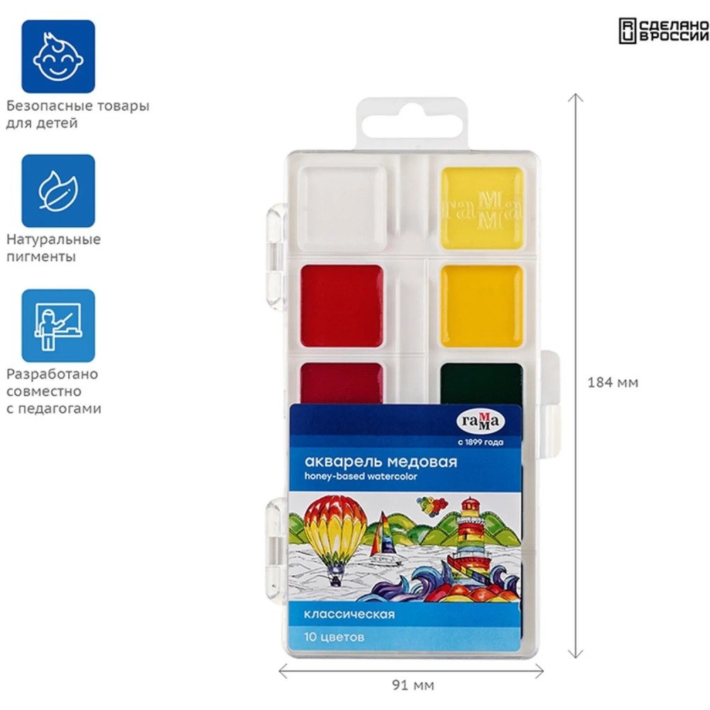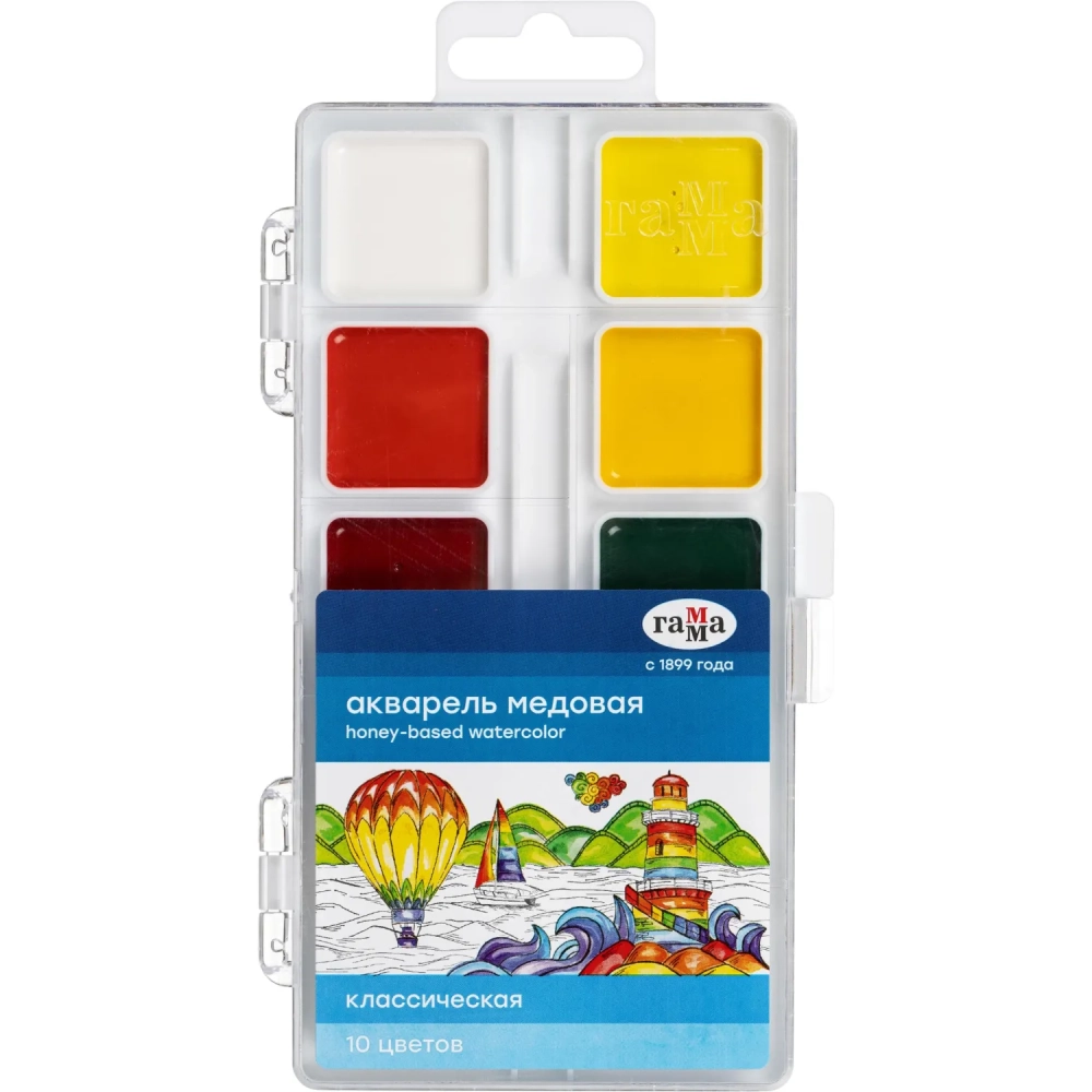 Краски акварельные Классическая, медов, Наб.10цв,без кисти,пластик 1009193