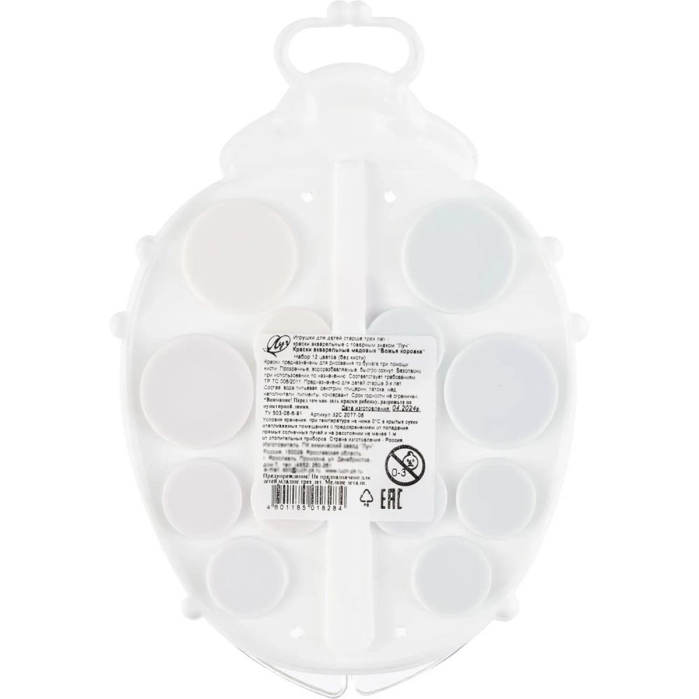 Краски акварельные Кроха Божья коровка, 12 цв. б/к 32С 2077-08 набор
