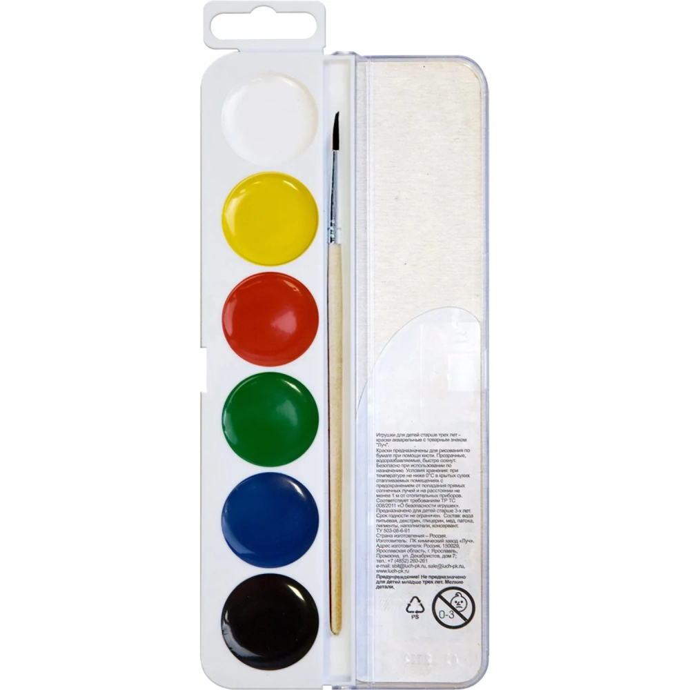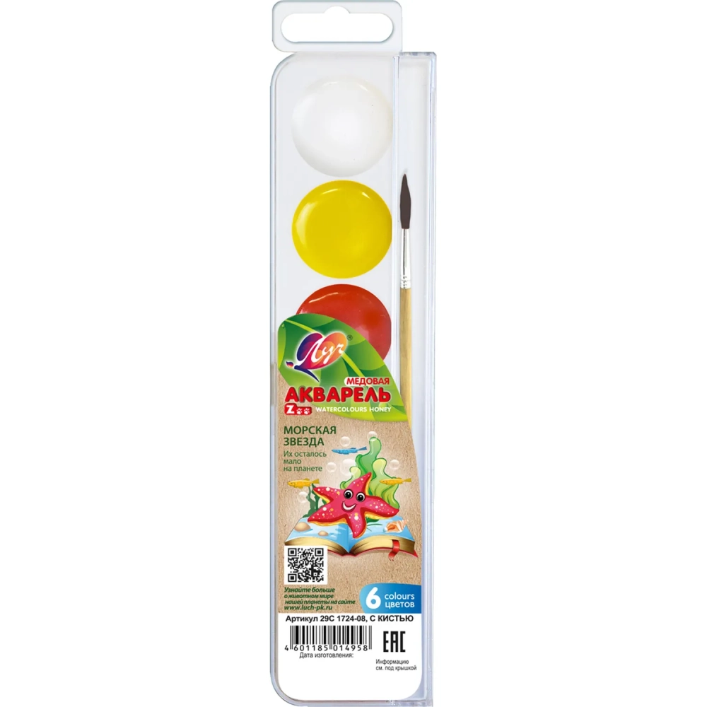 Краски акварельные Луч ZOO 6 цветов с/кистью, 29С 1724-08