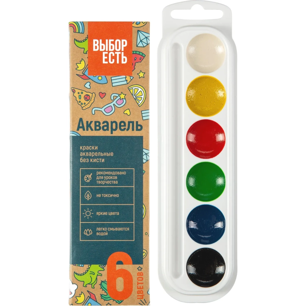 Краски акварельные Выбор есть 6 цв, б/кисти, картон