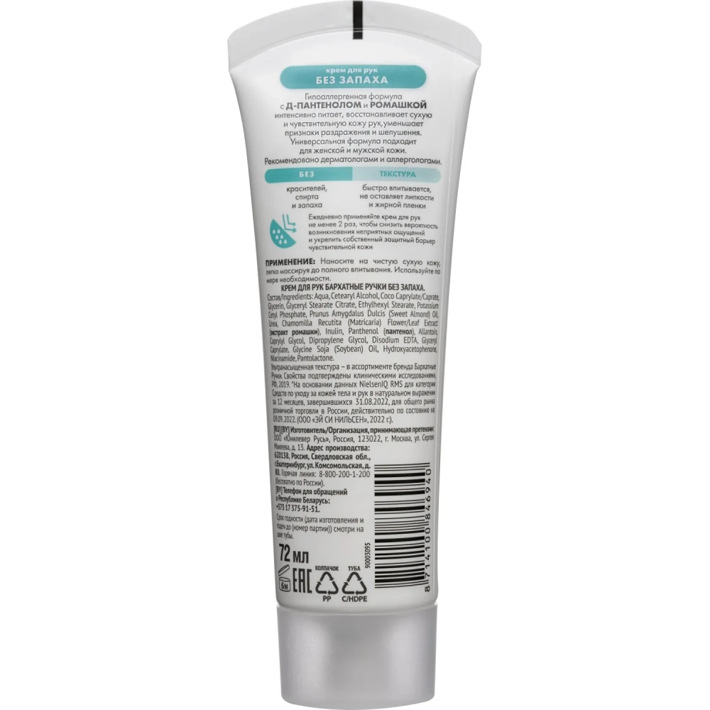 Крем для рук Бархатные ручки 72мл без запаха 68184858