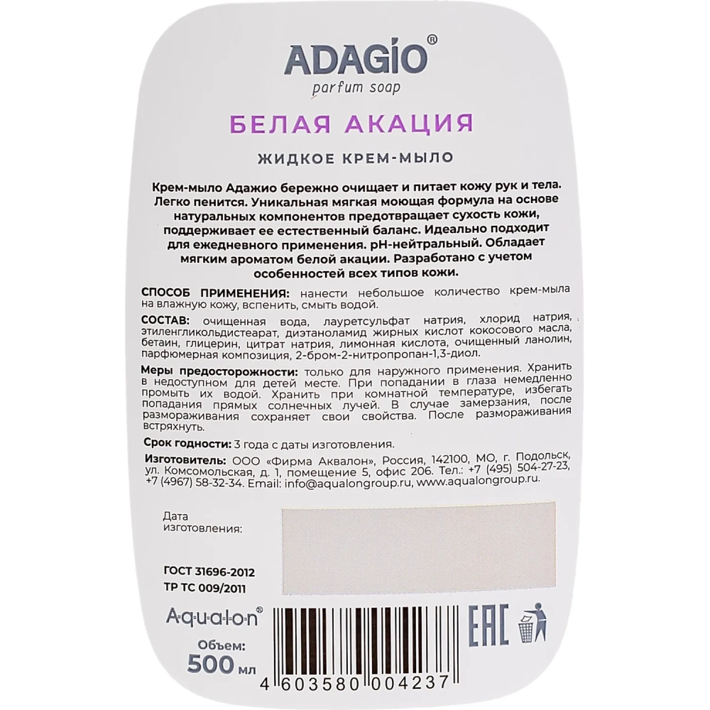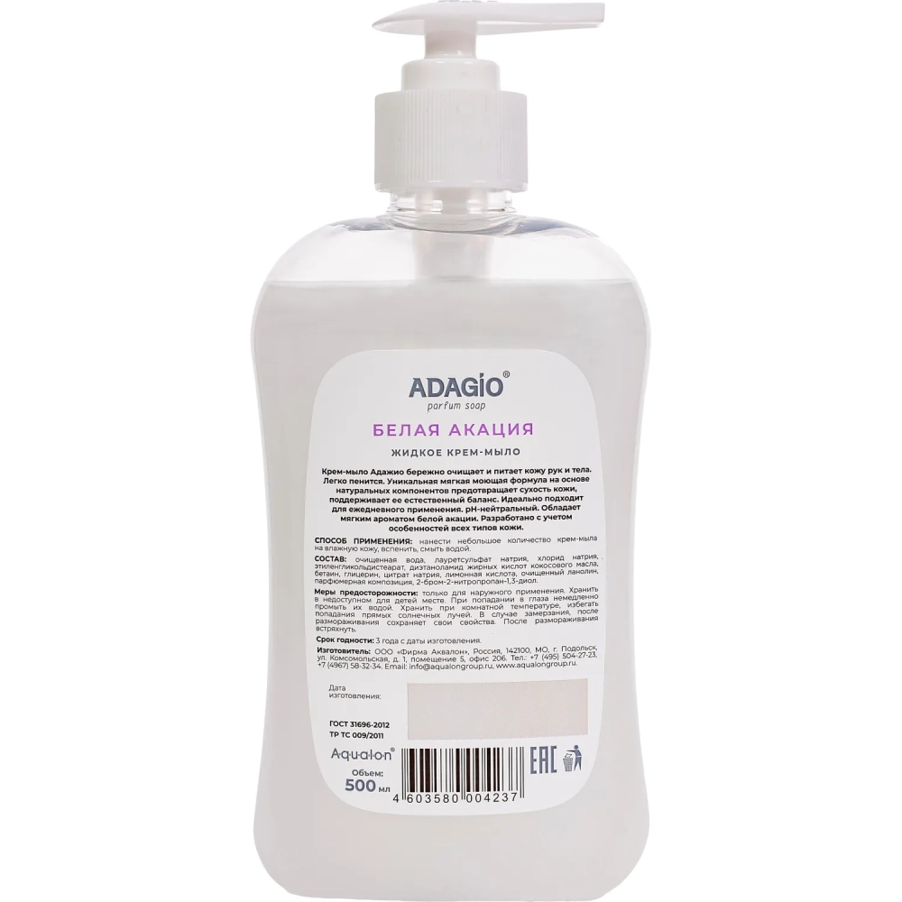 Крем-мыло АДАЖИО 500мл Белая акация с дозатором (белое)