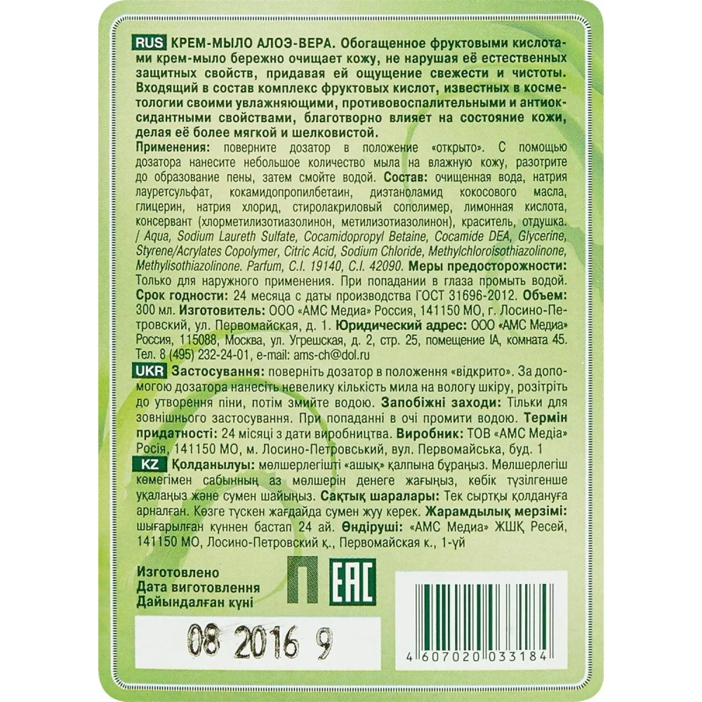 Крем-мыло жидкое РУССКИЕ ТРАВЫ 300мл пуш-пул Алоэ-Вера