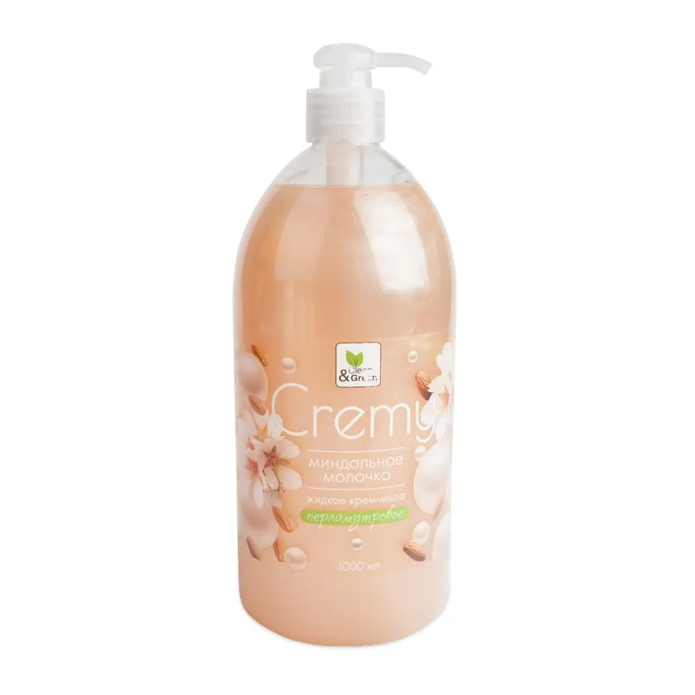 Крем-мыло жидкое с перламутром "Cremy" миндальное молочко с дозатором 1000 мл. Clean&Green CG8465