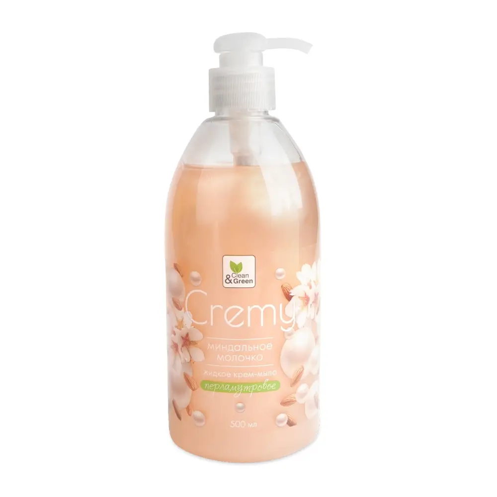 Крем-мыло жидкое с перламутром "Cremy" миндальное молочко с дозатором 500 мл. Clean&Green CG8450