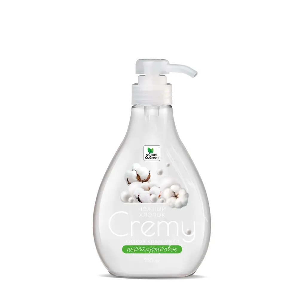 Крем-мыло жидкое с перламутром "Cremy" нежный хлопок с дозатором 250 мл. Clean&Green CG8407