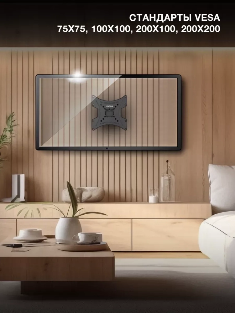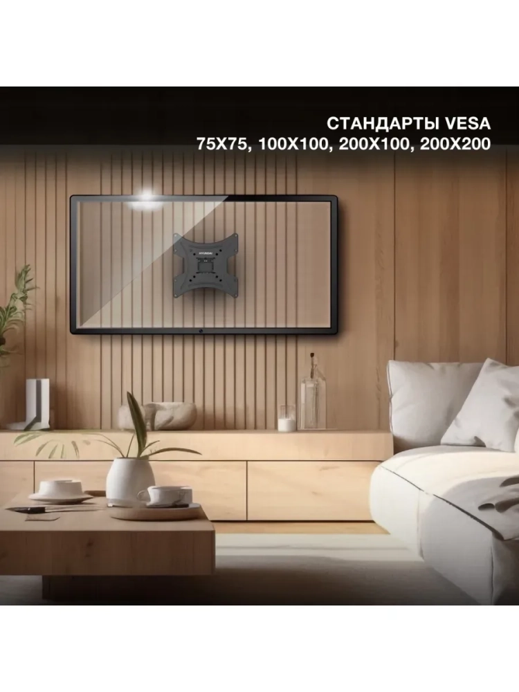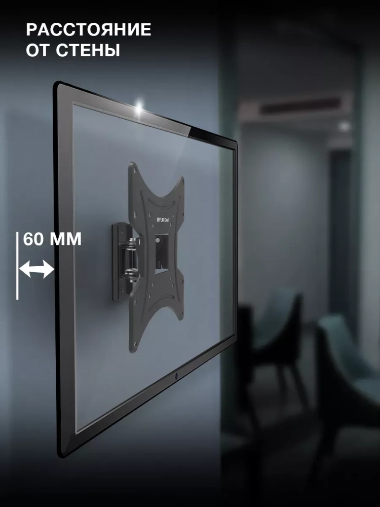 Отличительной особенностью кронштейна Hyundai GL-R2 является постоянное расстояние от стены до ТВ 6 см. Это обеспечивает экономию свободного пространства в помещении и безопасность установки.