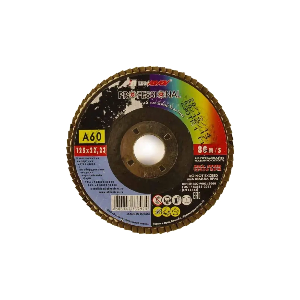 Круг лепестковый торцевой 125 х 22 мм 14А зернистость Р60 Луга-Абразив 4484 / Диск для УШМ болгарки КЛТ