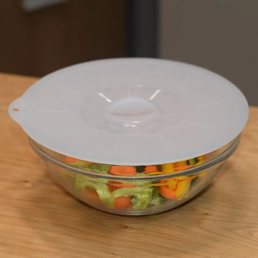 Крышка-присоска предназначена для хранения продуктов в мисках, салатниках, контейнерах и другой посуде диаметром до 21 см. Она препятствует попаданию внутрь пыли, посторонних запахов и предметов. Изделие станет отличной альтернативой пленке, пакетам или фольге. Накройте салатник крышкой-присоской, слегка надавите на ее центр, и она прилипнет к краям посуды. Чтобы снять крышку-присоску, приподнимите ее за край. Изделие предназначено для многократного применения. Перед первым использованием и после каждого применения промыть в теплой воде с жидким моющим средством, сполоснуть и просушить. Можно мыть в посудомоечной машине. Не используйте жесткие щетки и абразивные материалы для мытья. В процессе использования может исчезнуть яркость цвета, но это не влияет на качество изделия.