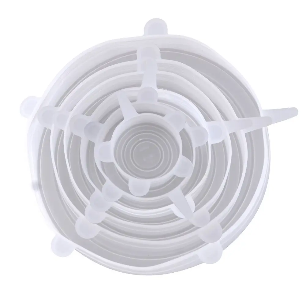 Набор силиконовых крышек предназначен для закрывания различных емкостей: банок, контейнеров, мисок, пиал. Крышки помогут организовать пространство на кухне и в холодильнике. Приспособления эластичные, подойдут также для квадратной и овальной посуды. Ваша пища дольше сохранит свежесть, не заветрится, не впитает посторонние запахи. В сезон фруктов и овощей силиконовые крышки помогут продлить срок хранения разрезанного арбуза, дыни, лимона и т. п. Набор крышек прост в использовании. Подберите необходимый размер для емкости. Взяв обеими руками крышку, растяните ее изнутри и наденьте на емкость. С помощью специального язычка, крышка легко снимается с любой емкости, достаточно потянуть за него вверх. Силиконовые крышки предназначены для многоразового использования. Выдерживают температуры от -40 до +220 °С. Изготовлено: силикон. Диаметры: 6,5см; 9см; 11см; 14см; 16см; 19,5см, высота от 2,5 до 3см.