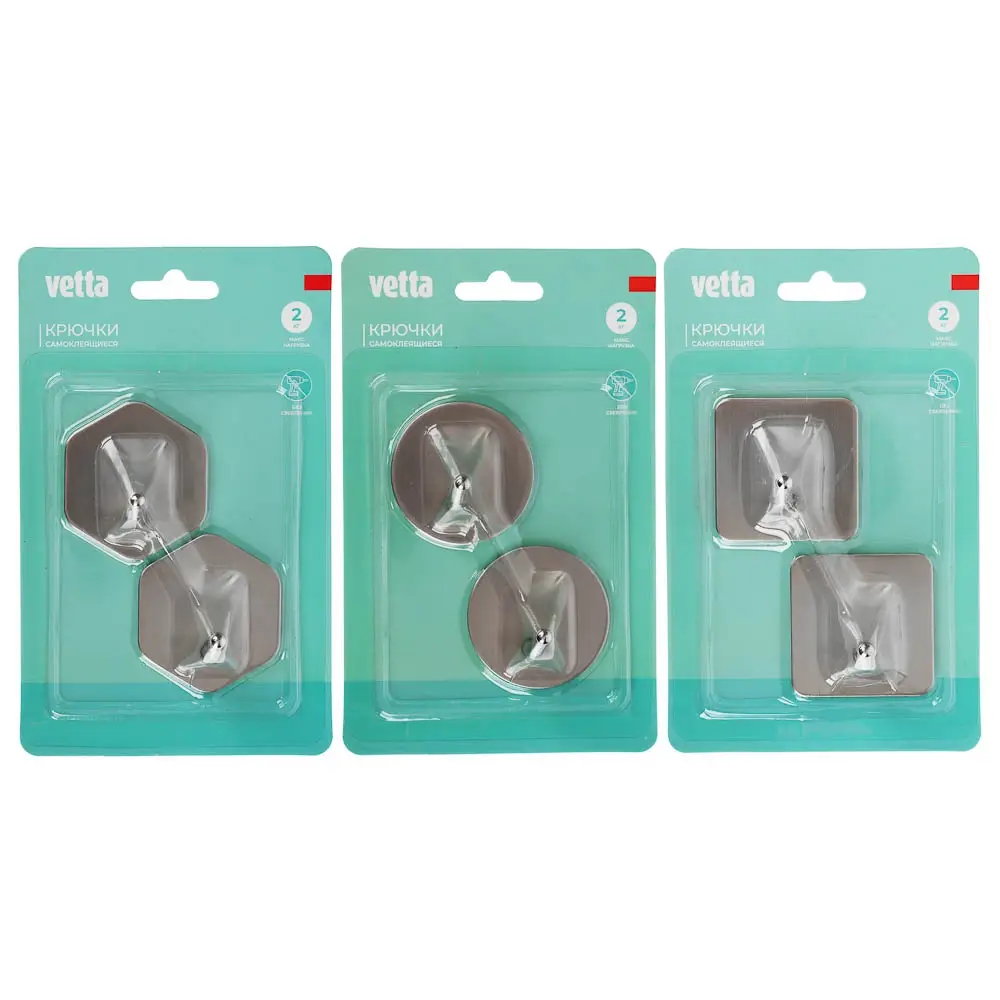 Крючки самоклеящиеся тм VETTA, 4,5x4,5см, нерж.сталь 201, 3 дизайна, 2шт