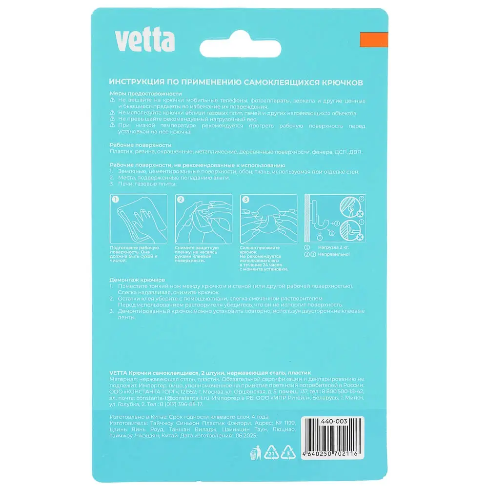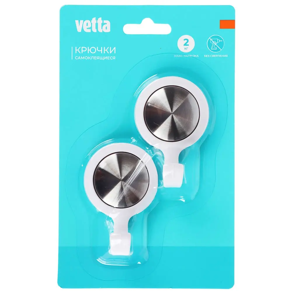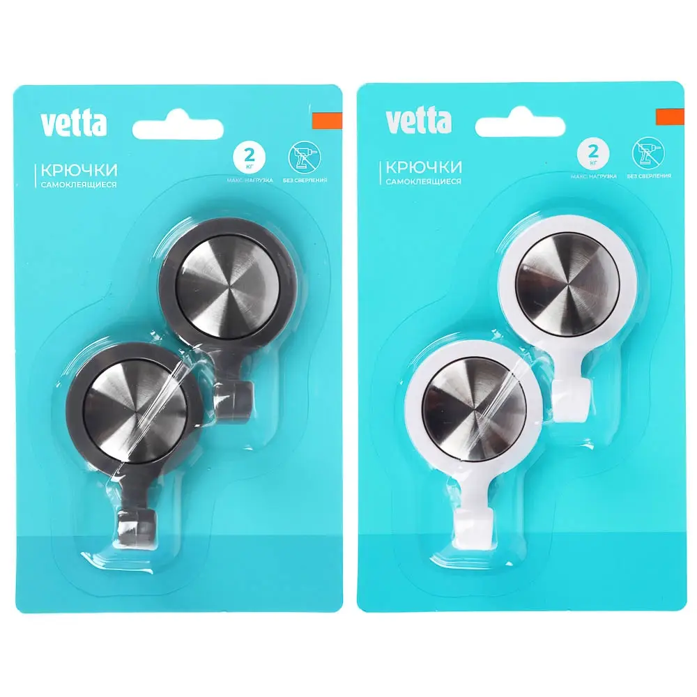 Крючки самоклеящиеся тм VETTA, нерж. сталь, пластик, 2 цвета, 2шт