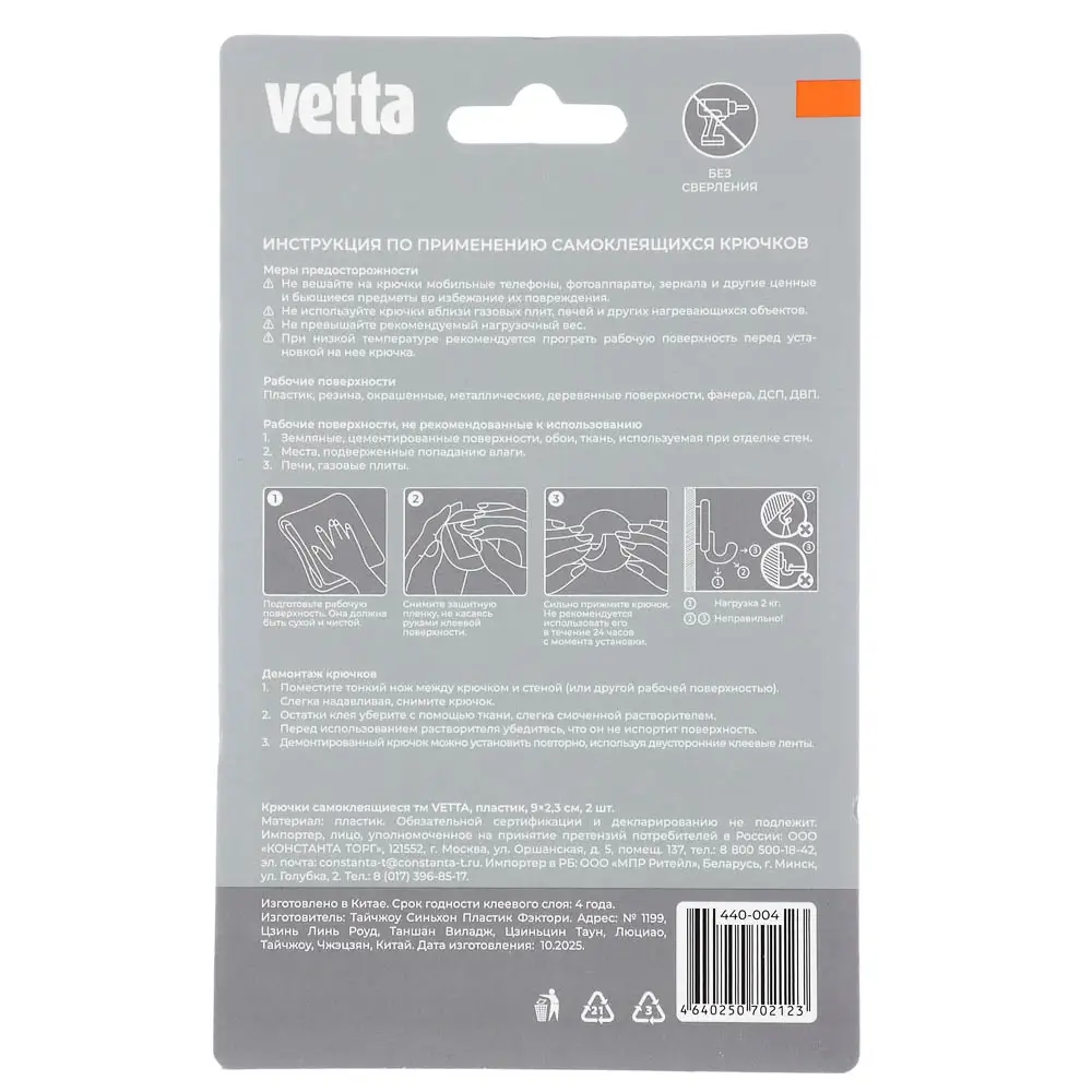 Крючки самоклеящиеся тм VETTA, пластик, 9x2,3см, 2шт