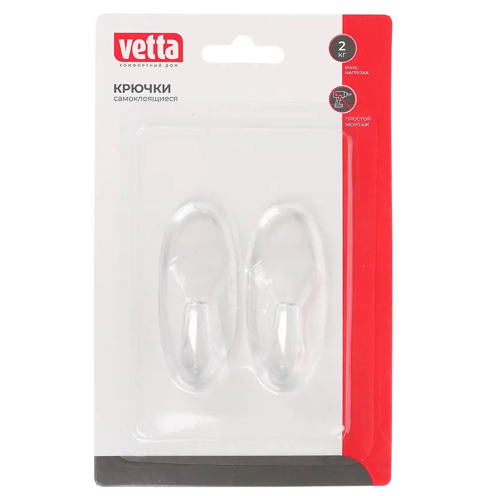 Крючки самоклеящиеся тм VETTA, прозрачные PS, 2шт