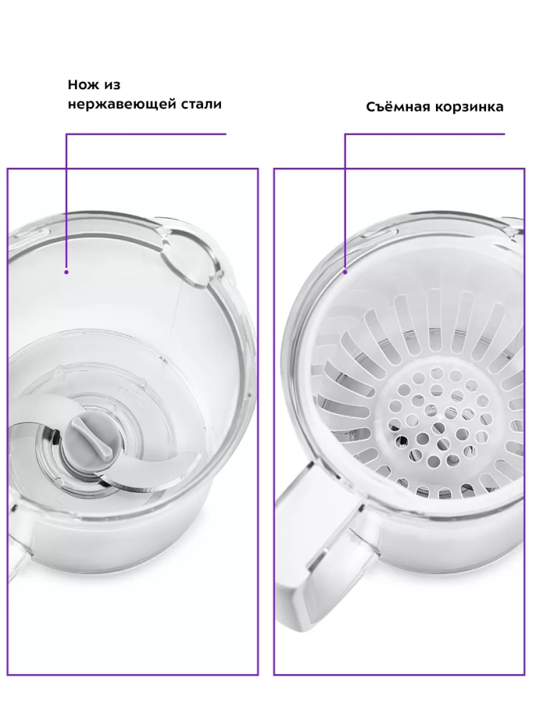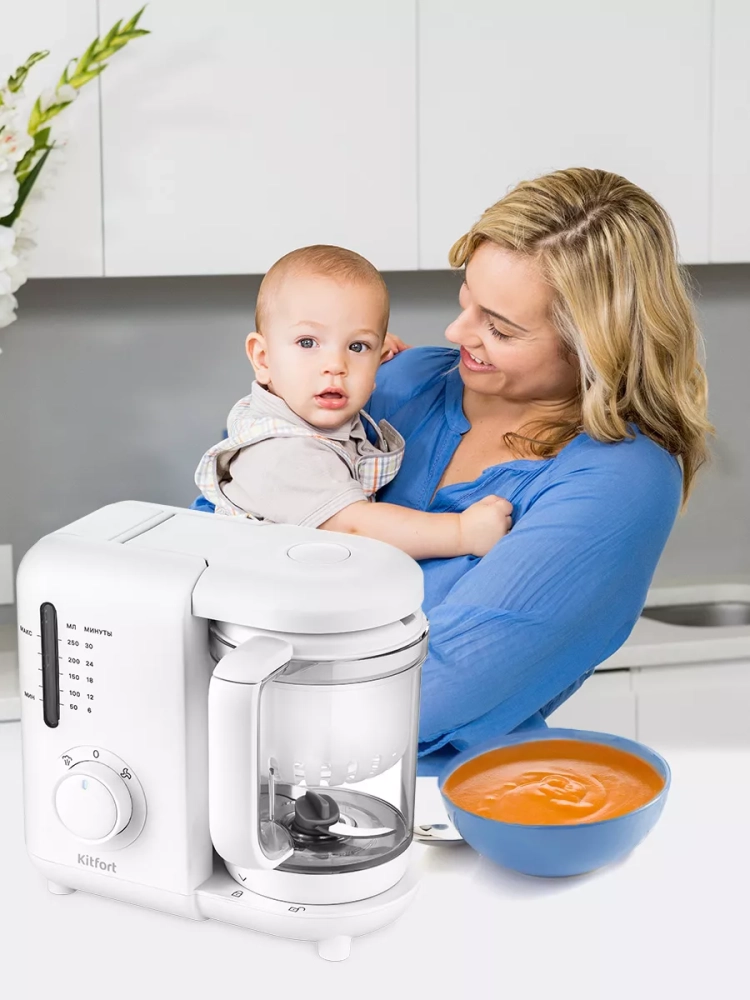 Кухонный блендер измельчитель с чашей 500Вт КТ-2320 от kitfort — это многофункциональный бытовой прибор, который станет незаменимым помощником на вашей кухне. Этот мощный электрический блендер сочетает в себе функции пароварки и измельчителя, что позволяет готовить разнообразные блюда на пар из овощей и других продуктов. Благодаря этому паровому устройству вы сможете сохранить все витамины и полезные вещества в приготовленных блюдах. Чаша устройства обеспечивает равномерное прогревание продуктов за счет постоянной циркуляции пара, что гарантирует качественное приготовление пищи без риска пригорания или переваривания. По окончании процесса приготовления прибор автоматически отключается, обеспечивая безопасность использования. Для дополнительной безопасности эксплуатации блендер работает только с установленной чашей и закрытой крышкой. Резиновые ножки предотвращают скольжение прибора на столе во время работы, обеспечивая его устойчивость. Мытье частей прибора не вызывает затруднений: ножевой блок полностью разбирается для удобного промывания всех элементов по отдельности. Это значительно упрощает уход за устройством после использования. Компактный дизайн блендера позволяет ему легко вписаться в интерьер любой кухни, а его функциональность делает процесс приготовления детского питания быстрым и простым. В комплект поставки входит стакан для смешивания, что добавляет удобства при использовании данного кухонного устройства.
