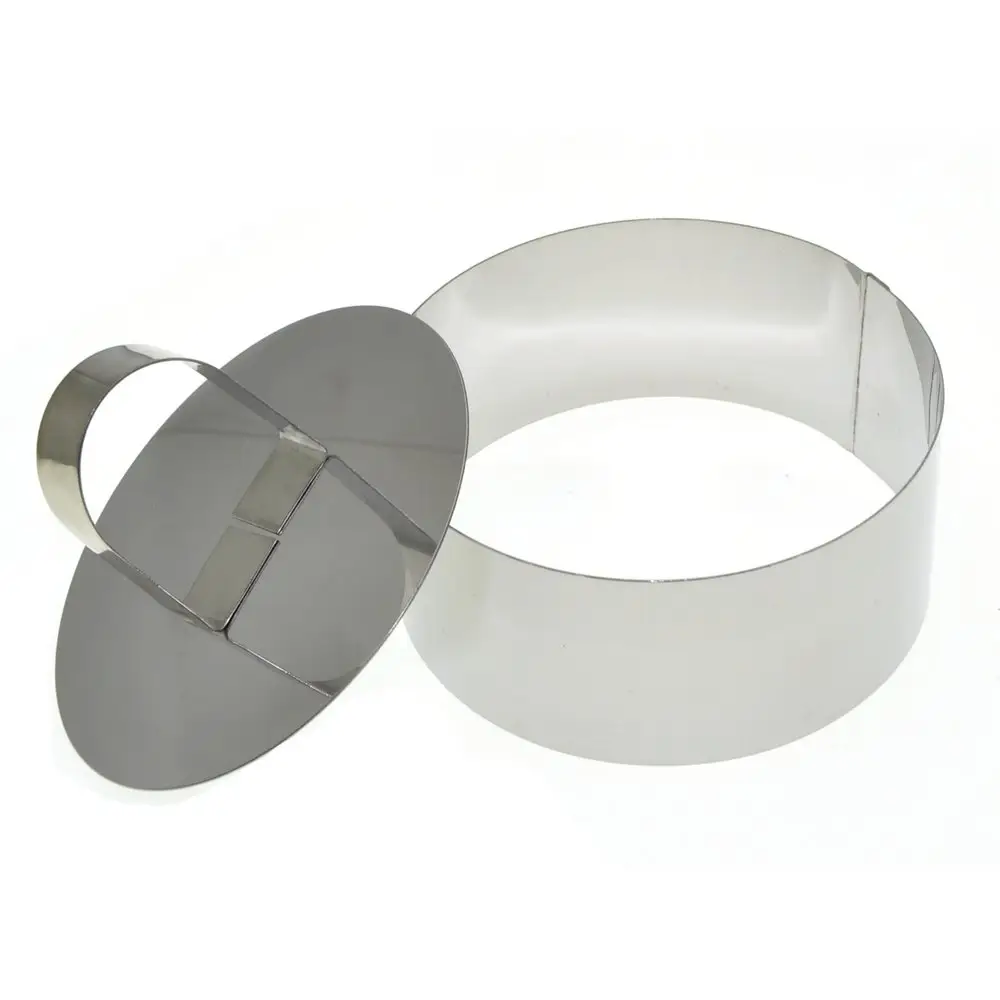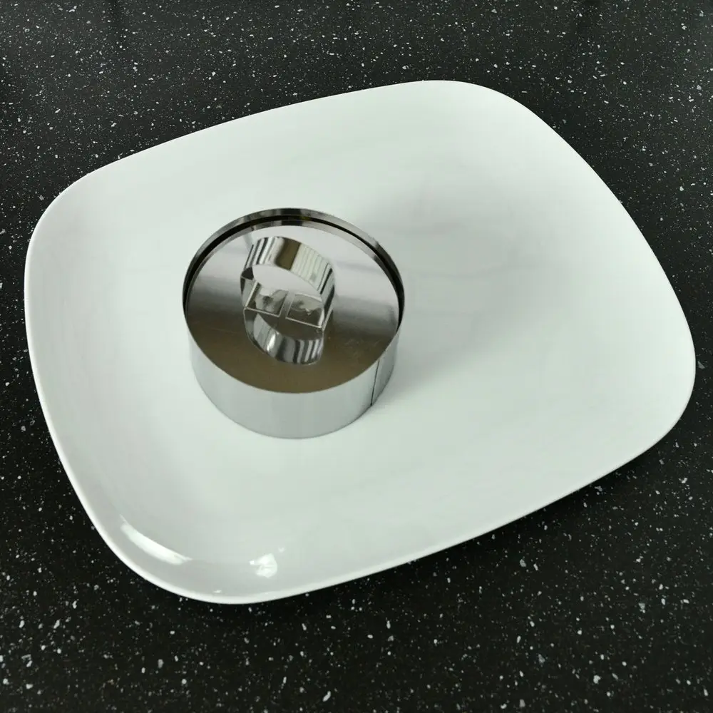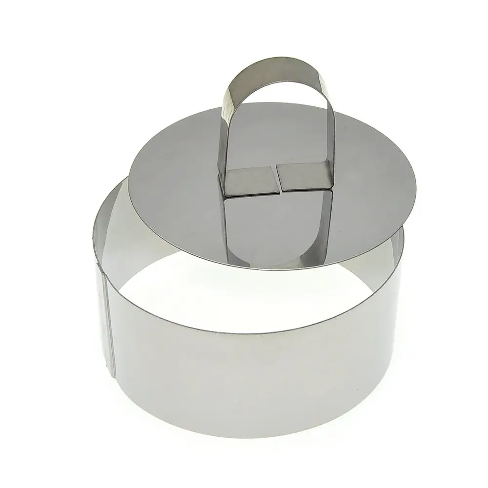 Диаметр 10 см, высота 4,5 см, в комплекте крышка, которая помогает придать форму продуктам. Изделие производится из нержавеющей стали. Рекомендуется после каждого использования промывать форму в проточной воде с жидкими моющими средствами.