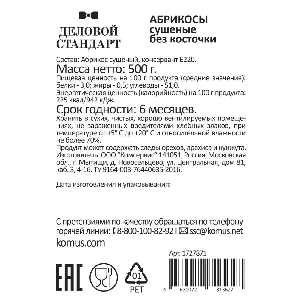Курага Деловой Стандарт, 500г