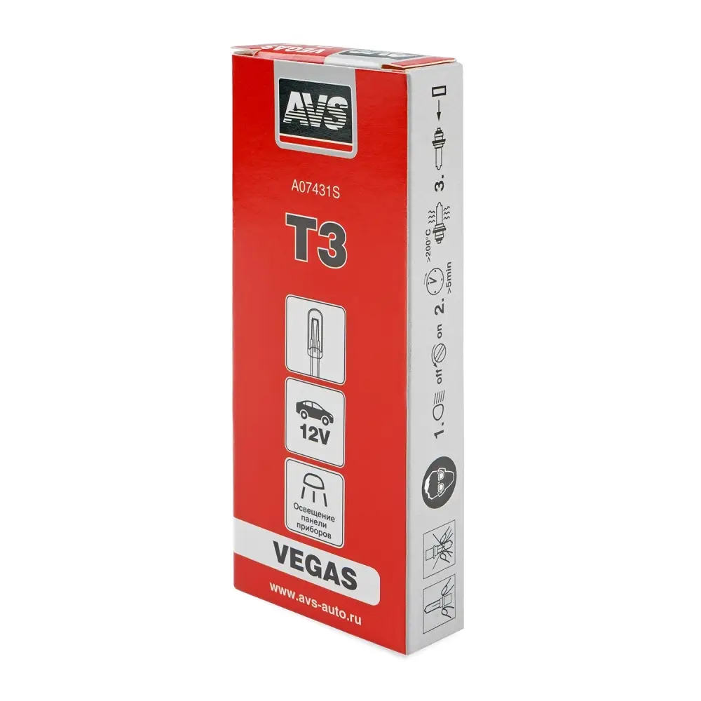 Лампа AVS Vegas 12V. T3 1.2W (б/ц, усы 2см) BOХ 10шт.