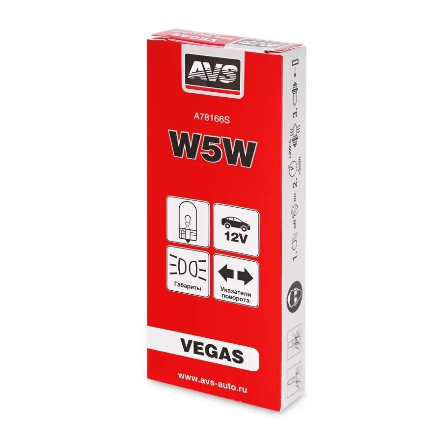 Лампа AVS Vegas 12V. W5W(W2,1x9,5d) BOX 10шт.