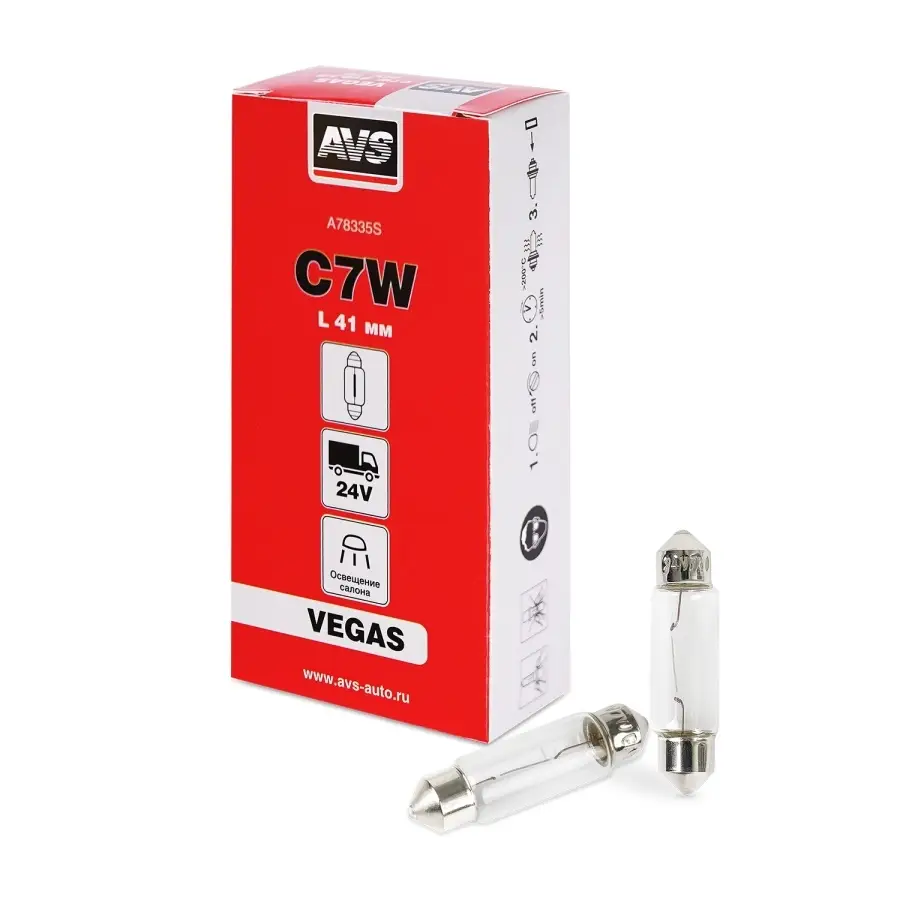 Лампа AVS Vegas 24V.C7W(SV8.5/8)L41мм. BOX 10шт.