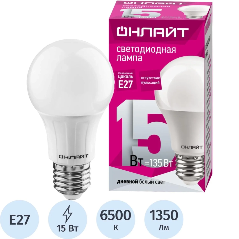 Лампа светодиодная ОНЛАЙТ OLL-A60-15-230-6.5K-E27 15Вт Е27 6500К 61151