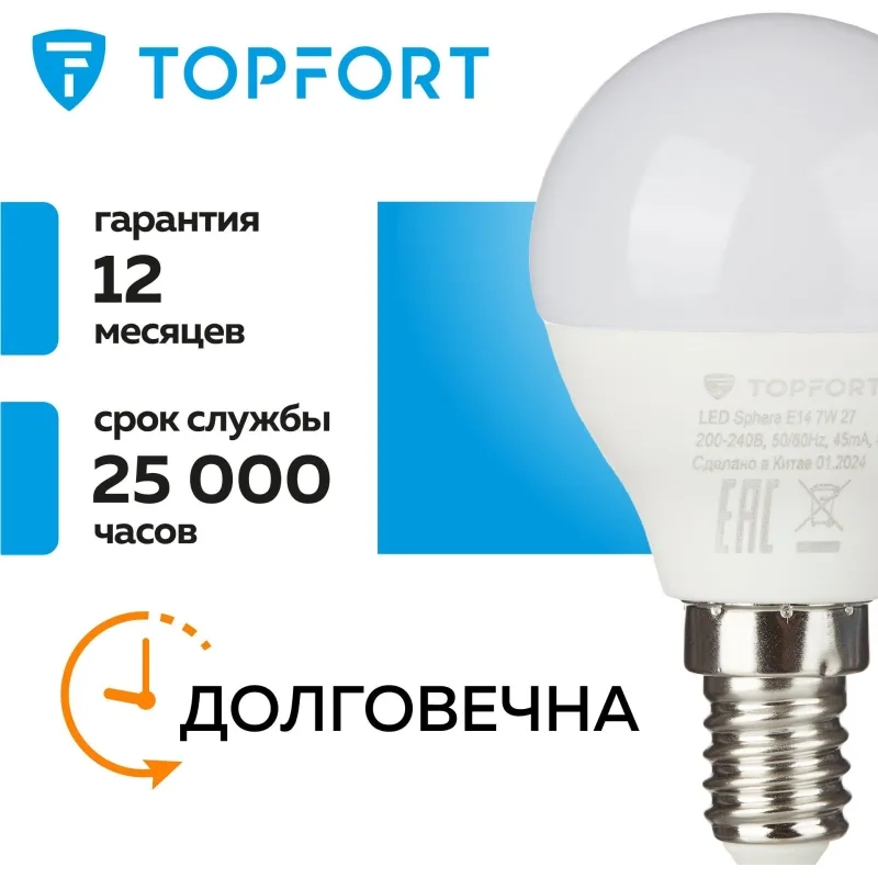 Лампа светодиодная Topfort E14 7W 2700K шар