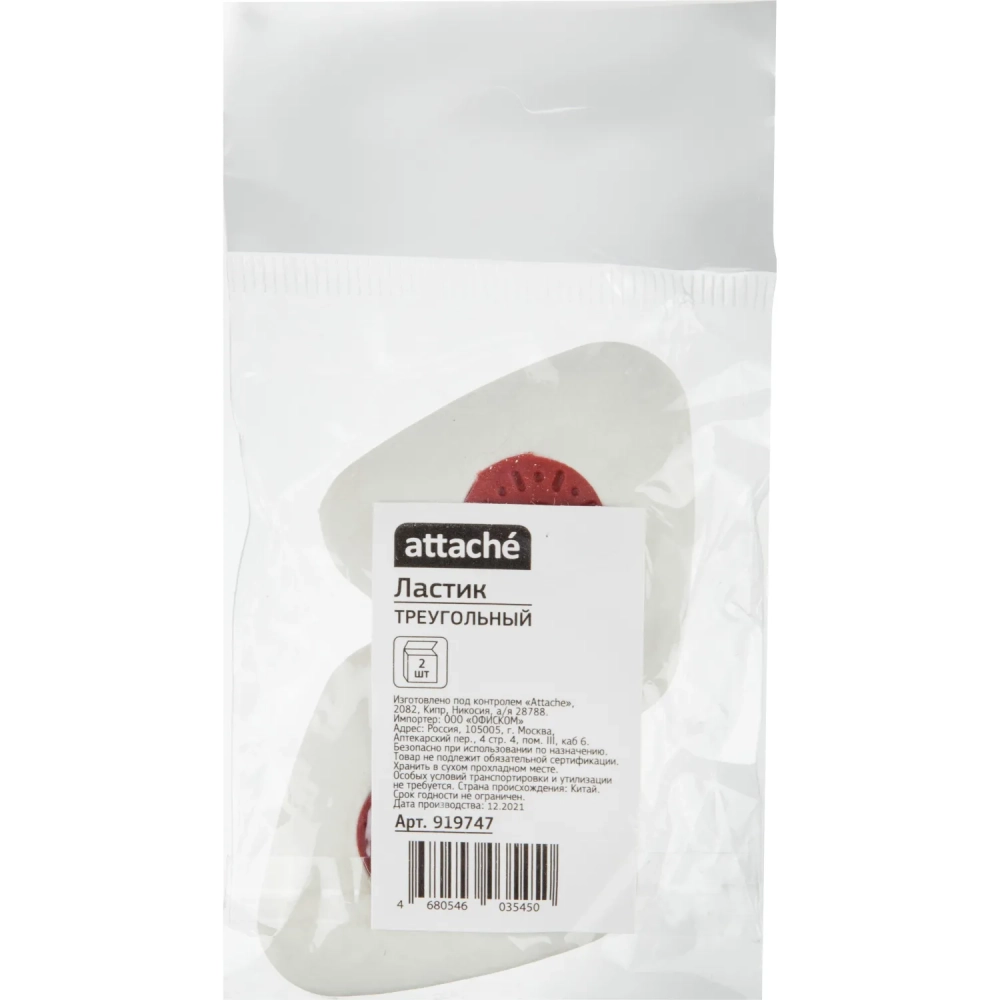 Ластик Attache треугольный, с пластиковым держателем (563890) 2 шт. в уп