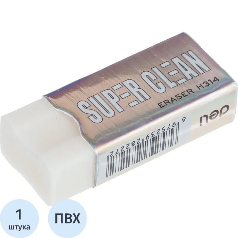 Ластик Deli EH314 41x17x11 мм Super Clean ПВХ белый
