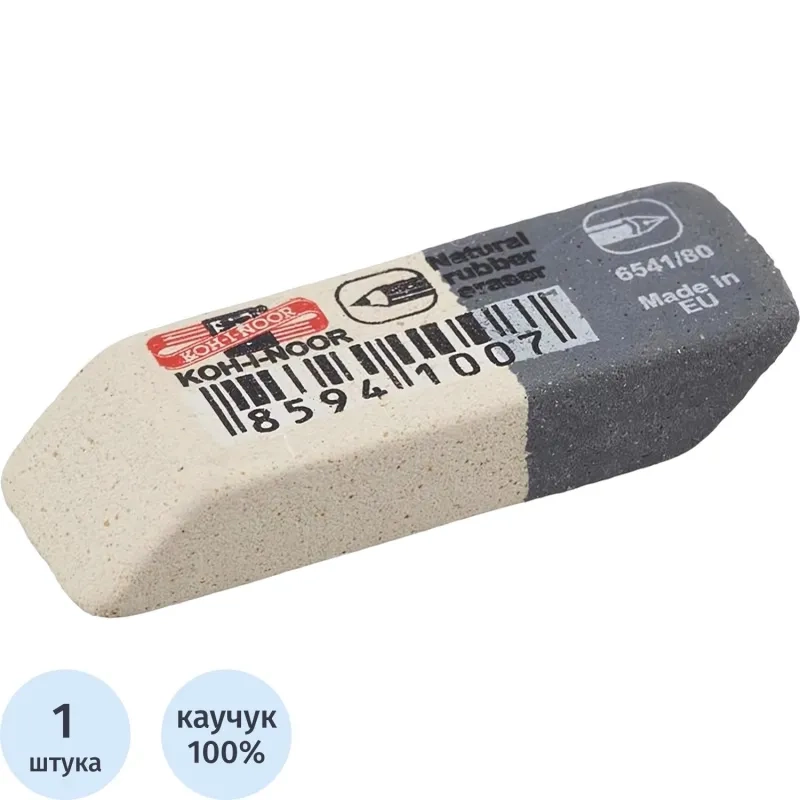 Ластик KOH-I-NOOR 6541/80, 41х14х8мм для графита и чернил серо-белый