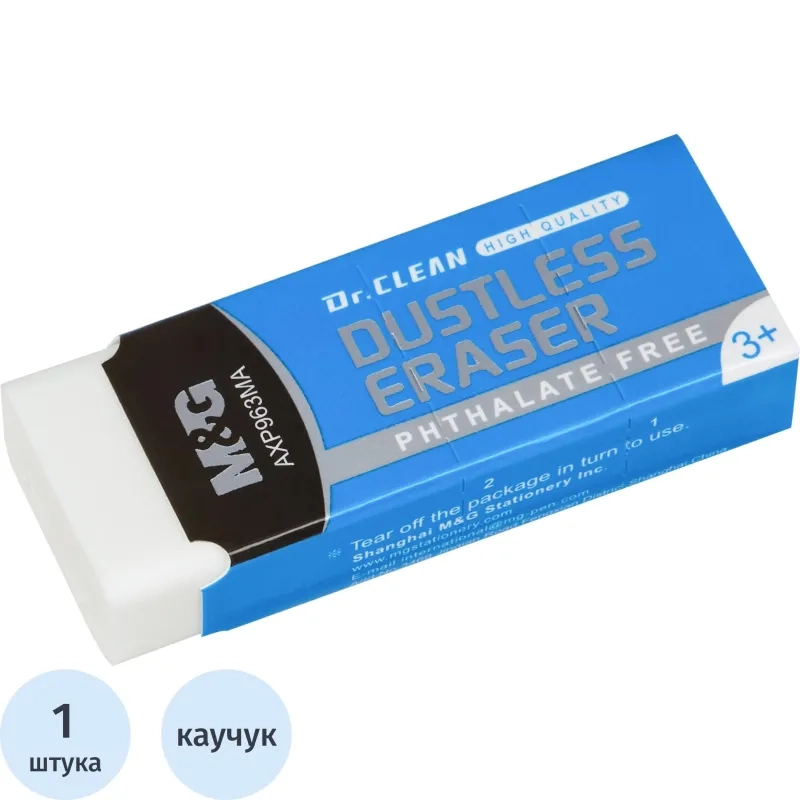 Ластик прямоугольный M&G,53x20x11 мм,белый, карт.упак. AXP963MA