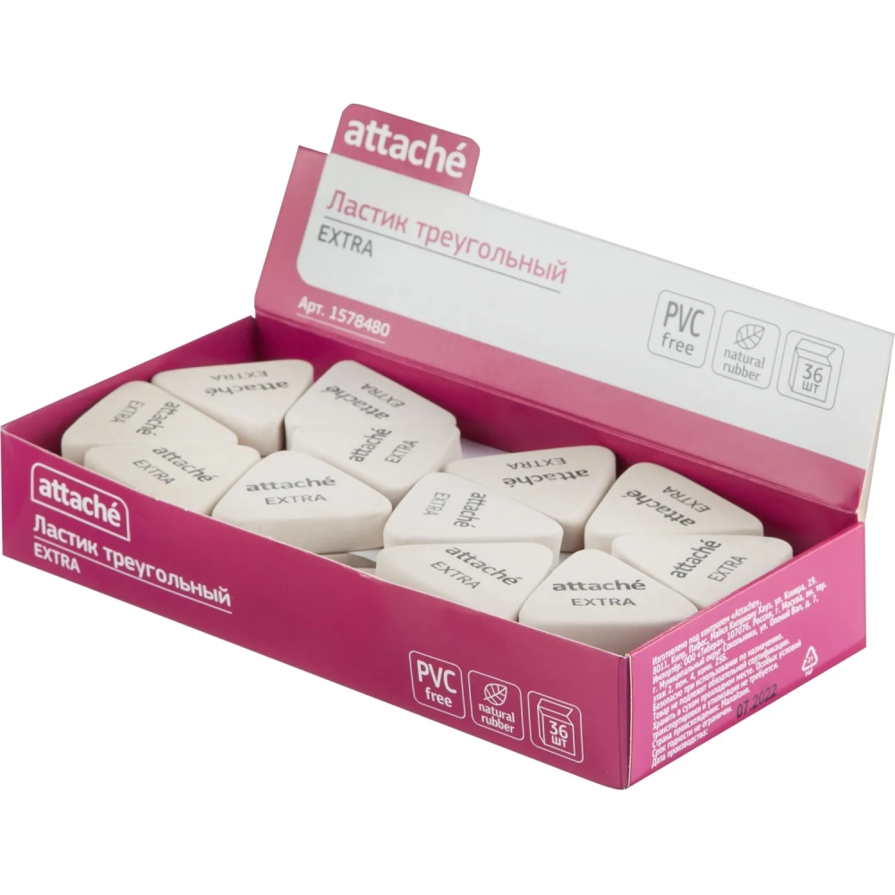 Ластик треугольный Attache Extra, натуральный каучук, 40x38x10мм, белый
