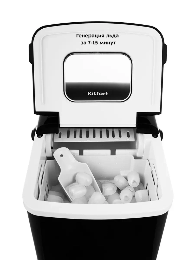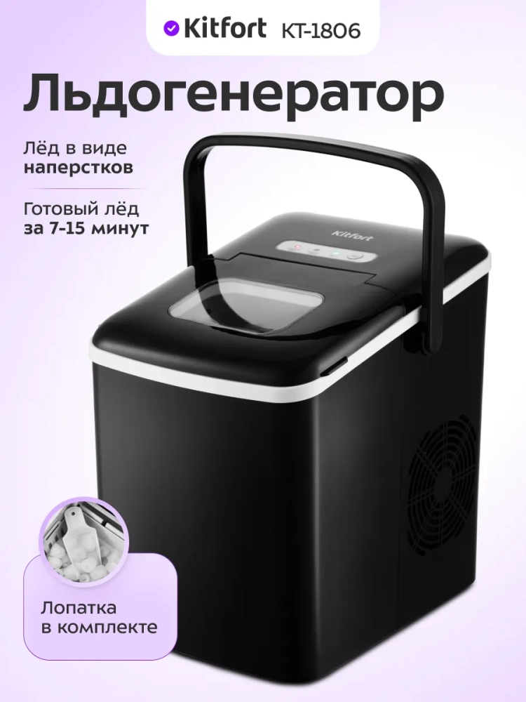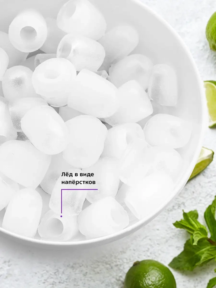 Льдогенератор Kitfort КТ-1806 — это современный прибор, который станет вашим незаменимым помощником на кухне. Этот генератор льда быстро и эффективно производит лед в форме наперстков, что делает его идеальным для использования в разнообразных напитках и коктейлях. Время приготовления льда составляет всего 7-15 минут, обеспечивая вас свежим льдом всегда под рукой. Особенностью данного аппарата является автоматическая система сбора готового льда в специальный контейнер. При его переполнении процесс генерации автоматически останавливается, предотвращая излишнее накопление. Лед не подмораживается благодаря термоизолированным стенкам прибора, что замедляет процесс таяния. Охлаждение осуществляется с помощью компрессора и хладагента R600a по принципу обычного холодильника. Изобутан R600a — экологически чистый хладагент, который не разрушает озоновый слой и минимально влияет на парниковый эффект. Его количество составляет всего 23 г. Для начала работы достаточно залить чистую фильтрованную воду в резервуар и нажать кнопку запуска. Полная корзина со свежим ice будет готова примерно через час использования прибора. Этот ледогенератор от Kitfort отличается компактными размерами и стильным дизайном, что позволяет ему легко вписаться в интерьер любой кухни или бара и говорит о большой емкости 1,9 литра. Он станет отличным дополнением к вашему холодильнику или другим кухонным устройствам.