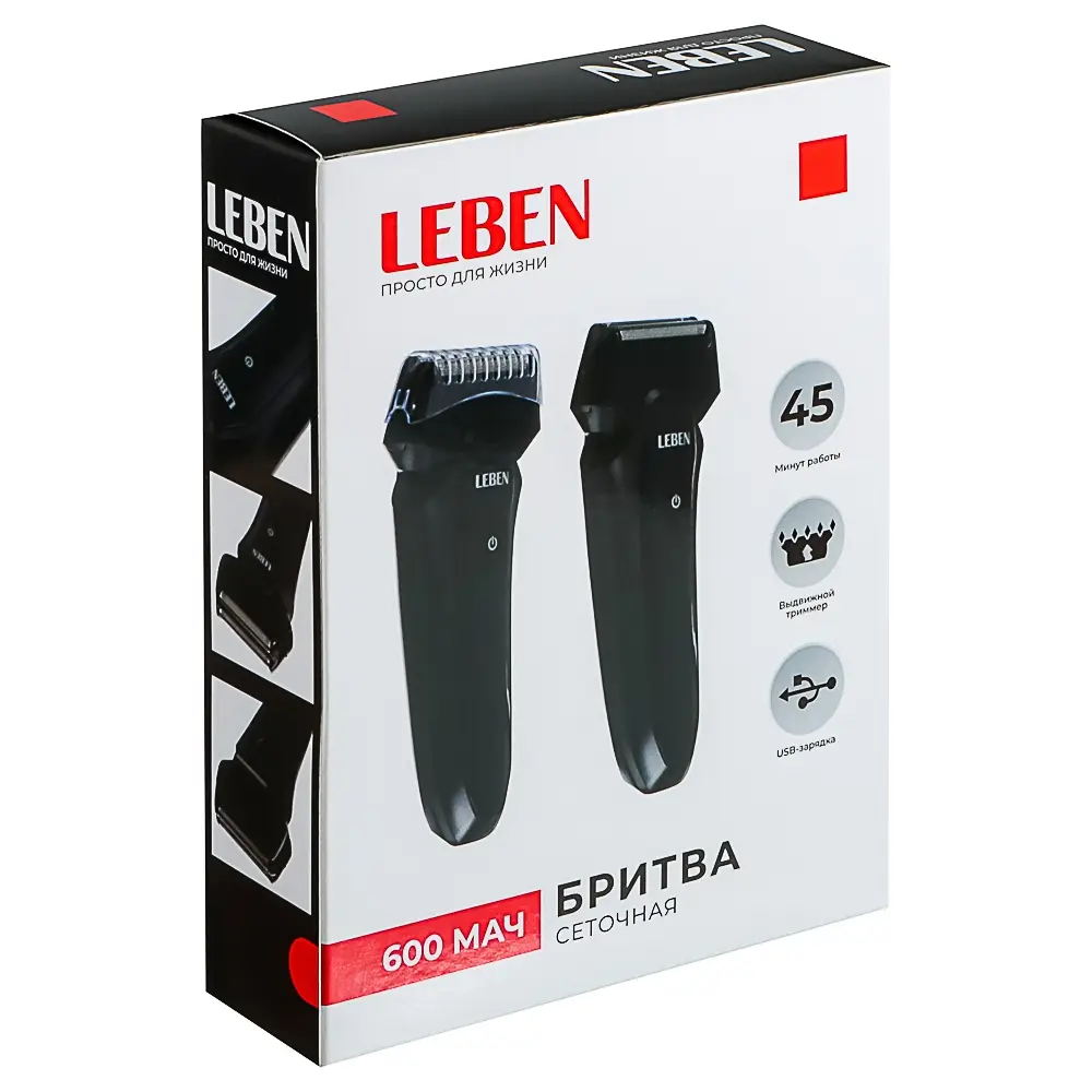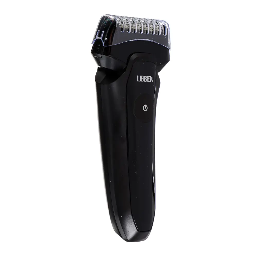 Электробритва сеточная LEBEN, 2 плавающие головки, сухое бритьё, черная. Электрическая бритва обеспечивает чистое сухое бритье. Бритвенные головки обеспечивают скольжение по коже без дискомфорта. Выдвижной триммер помогает отрегулировать длину бритья. Бритва электрическая, сухое и влажное бритьё. Работа от аккумулятора, время работы без подзарядки - 45 минут! Самозатачивающиеся двойные лезвия из высокопрочной стали! Минимальный контакт лезвий с кожей для наименьшего раздражения! Очистка под струёй воды!
