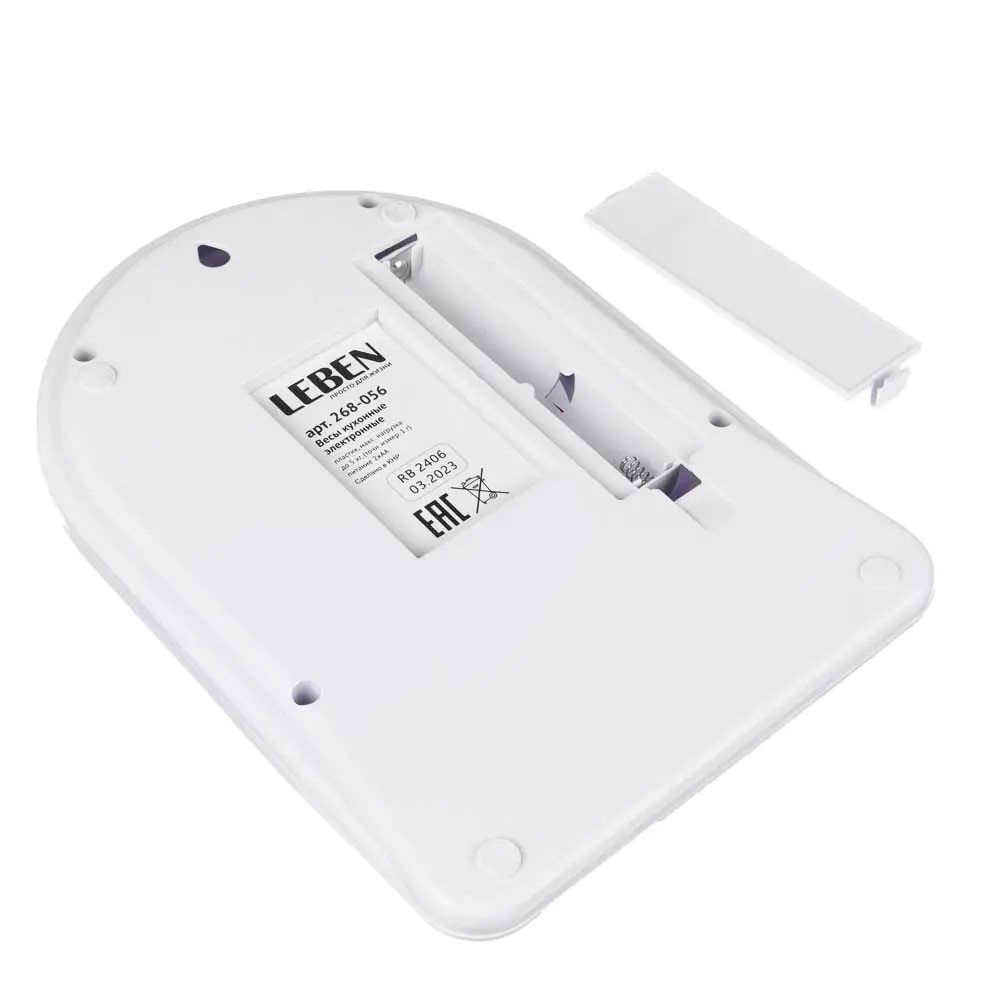 Весы кухонные электронные LEBEN в прочном пластиковом корпусе с максимальной нагрузкой до 7 кг – это высокоточная техника для кухни с тензометрическим датчиком с погрешностью всего 1 грамм, которая позволит реализовывать любые рецепты с максимальной точностью. Весы имеют круглую платформу, на которую можно ставить любую посуду. ЖК-дисплей с подсветкой делает процесс взвешивания удобным при любом освещении. Предусмотрена функция обнуления веса тары и автоматическое отключение, а также имеется индикация перегрузки и низкого заряда батареи. Питание осуществляется от 2-х батареек АА-типа. Универсальный цвет весов впишется в любой интерьерный стиль.
