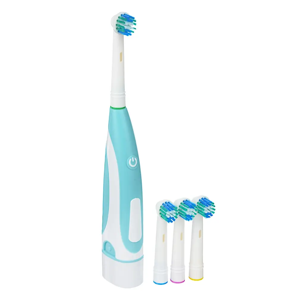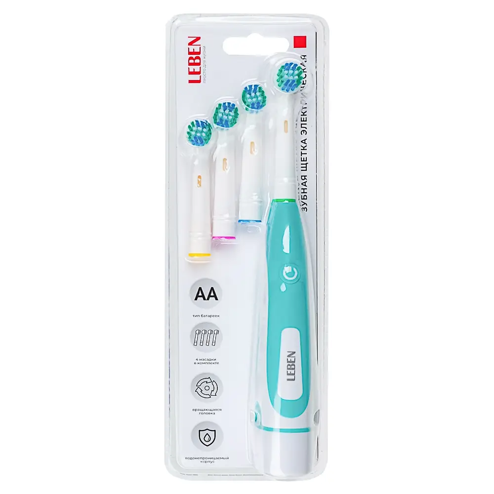 LEBEN Зубная щётка электрическая, круглая, 4 насадки в комплекте, 2xАА, 6000 об/мин
