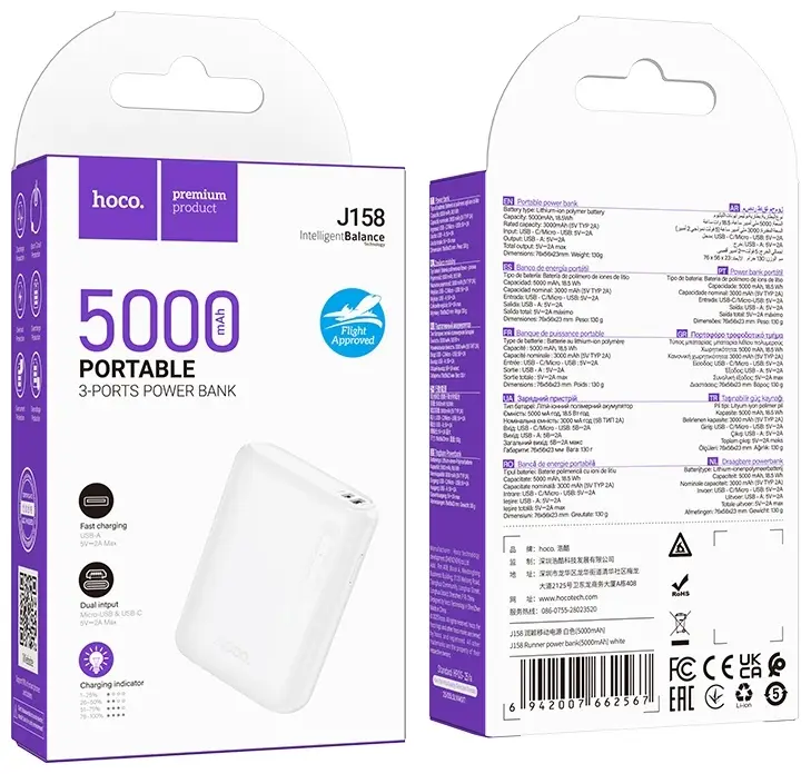 Hoco J158 — это сочетание практичности, надёжности и современного дизайна, созданное для тех, кто ценит мобильность и независимость от розеток.