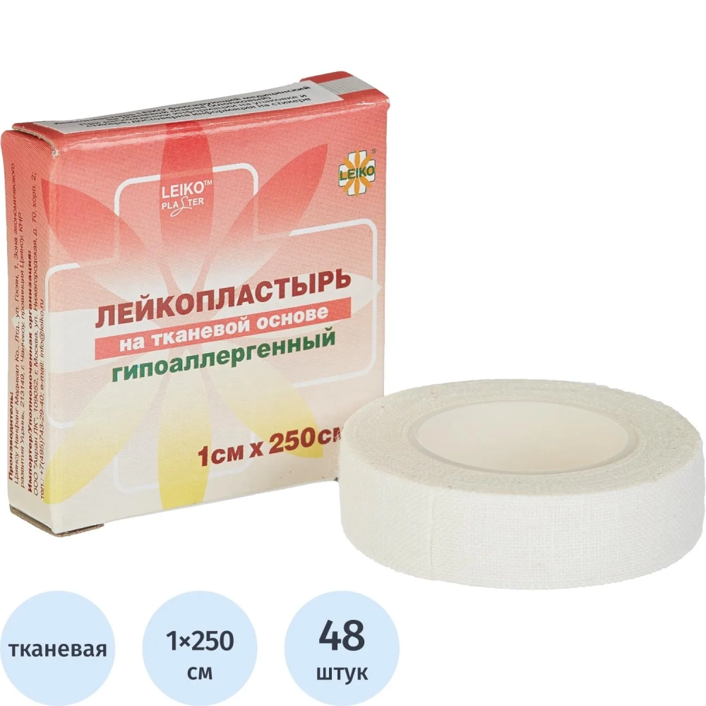 Лейкопластырь 1х250см тканевый в картоне LEIKO, 48 шт/уп