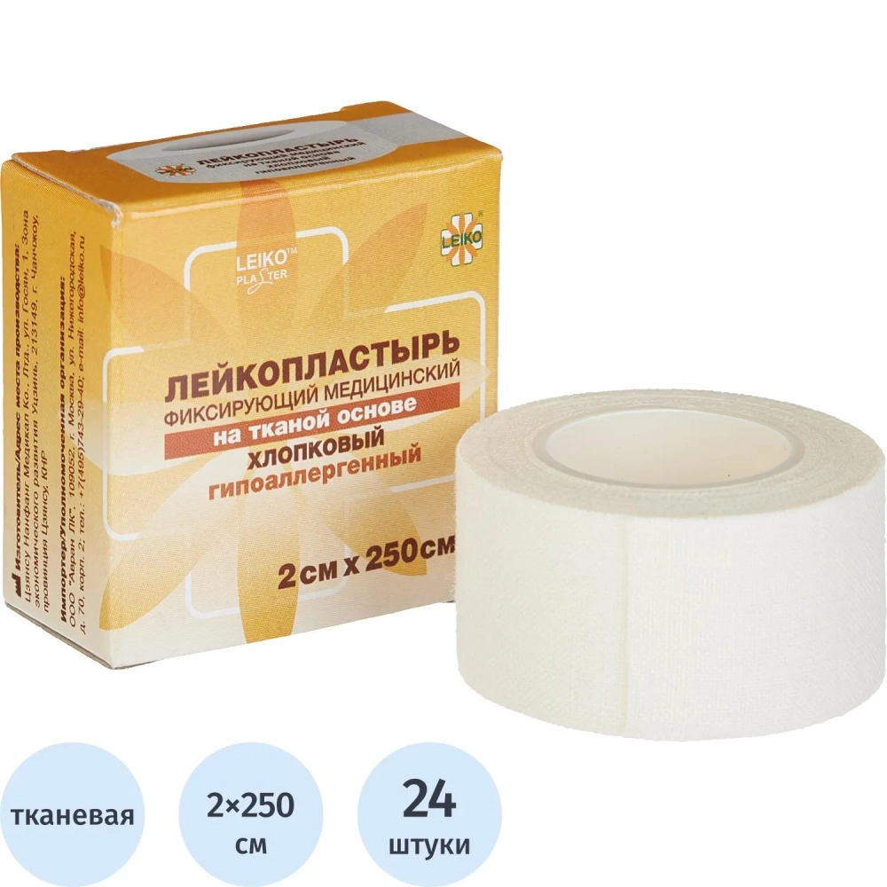 Лейкопластырь 2х250см тканевый в картоне LEIKO, 24 шт/уп