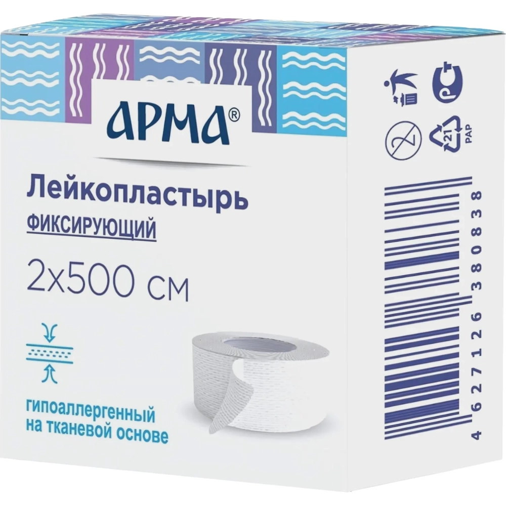 Лейкопластырь 2х500см тканевый белый в картоне, АРМА, 36 шт/уп