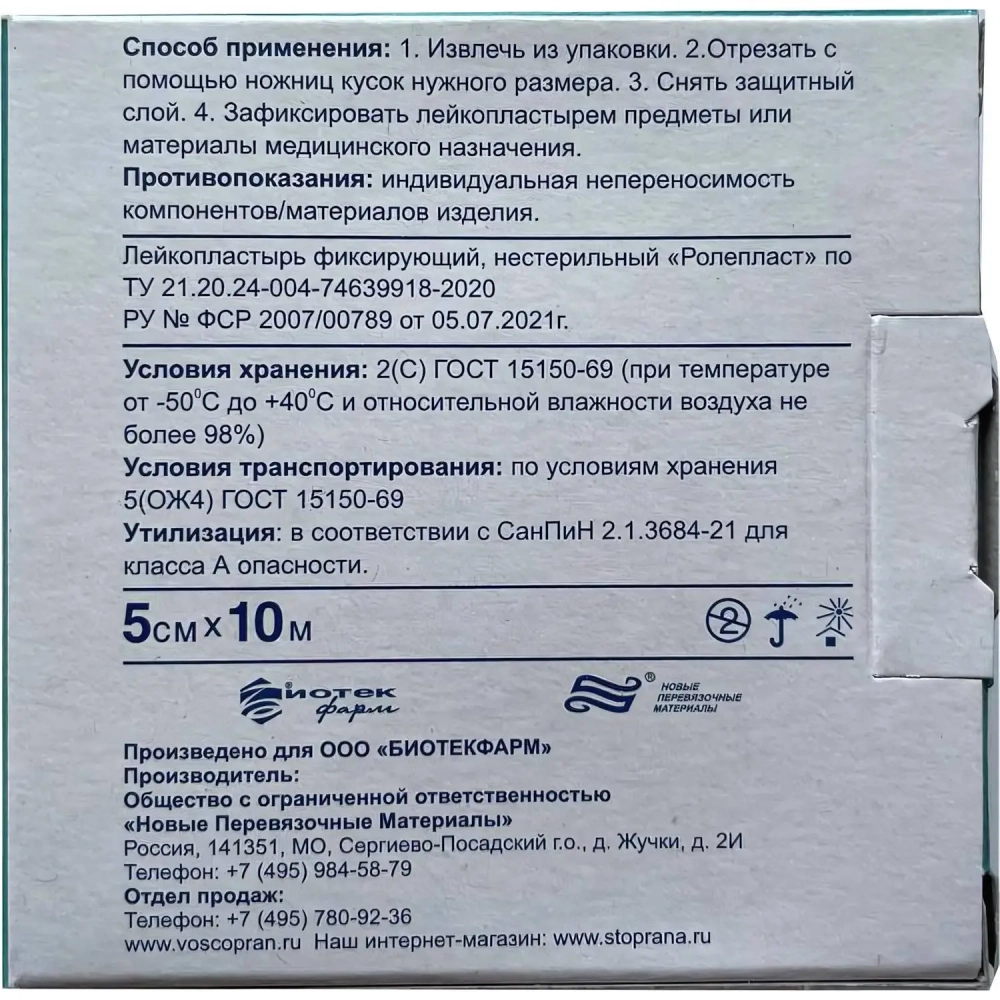 Лейкопластырь Ролепласт, 5смх10м, нетканый в картоне