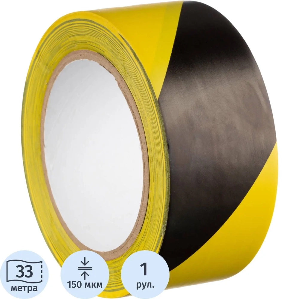 Лента для разметки ПВХ 50мм x 33м (150мкм) желто-черный