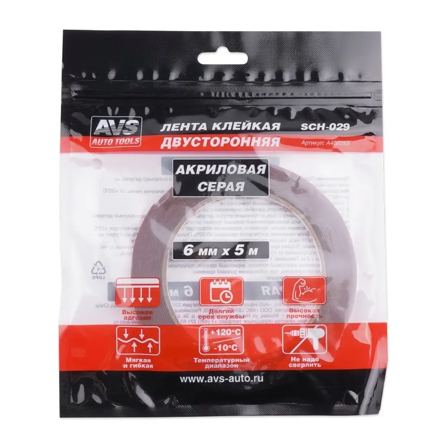 Лента клейкая двусторонняя AVS SCH-029 6 mm x 5 m акриловая основа (серая)