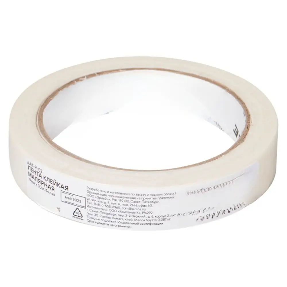 Лента клейкая малярная (скотч), 19 мм*30 м, белая