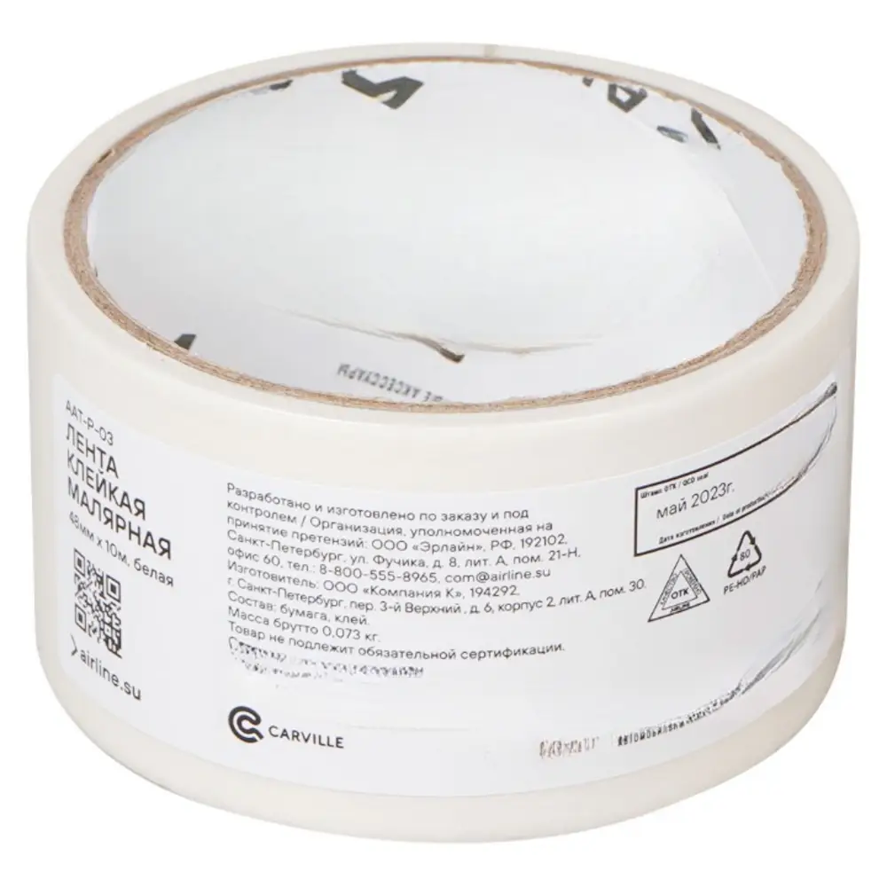 Лента клейкая малярная (скотч), 48 мм*10 м, белая