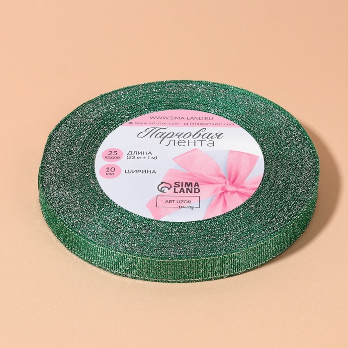 Лента парчовая, 10 мм, 23 ± 1 м, цвет зелёный №41