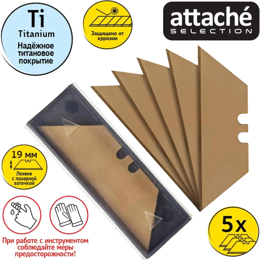 Лезвие для ножей запасное Attache Selection 19мм,трапец.,титан.покр, 5шт/уп