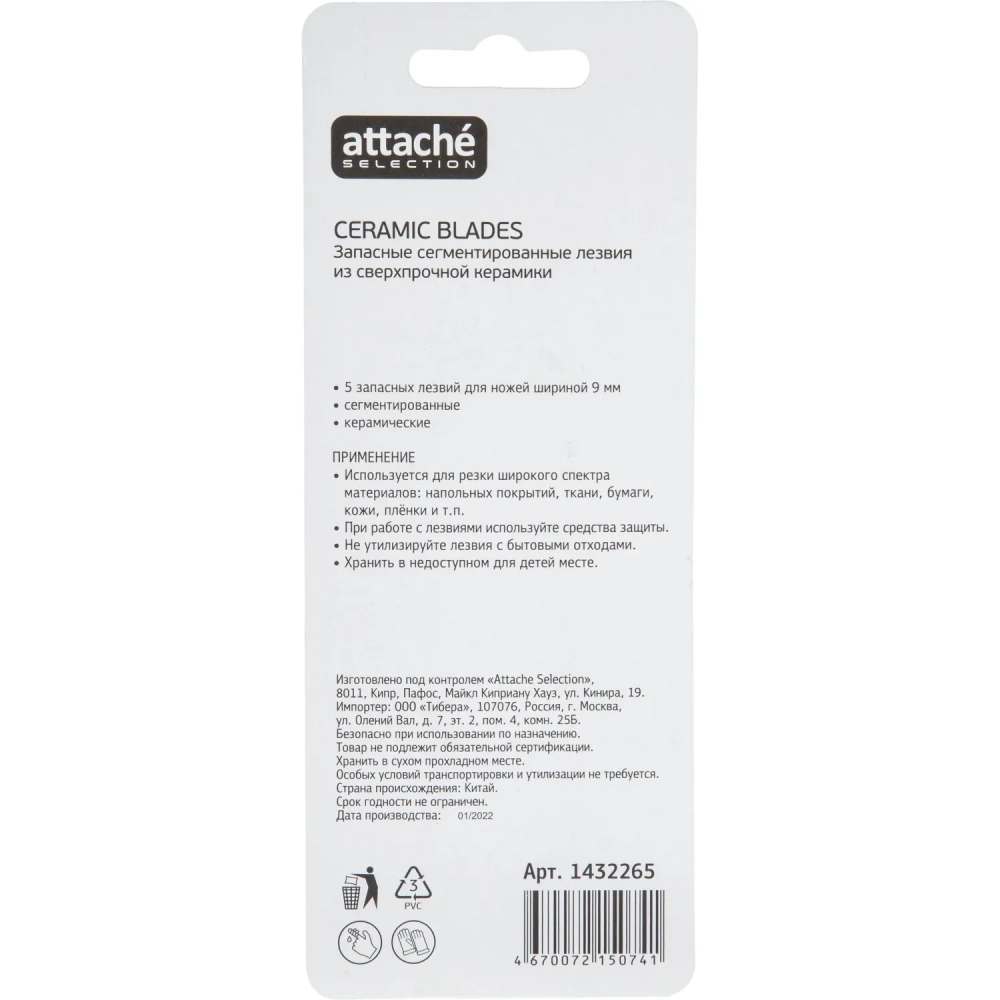 Лезвие для ножей запасное Attache Selection 9мм сегм.керамическ., 5шт/уп