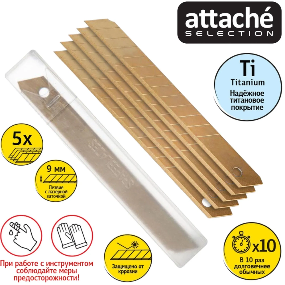 Лезвие для ножей запасное Attache Selection 9мм сегм.титан.покр,SK5, 5шт/уп