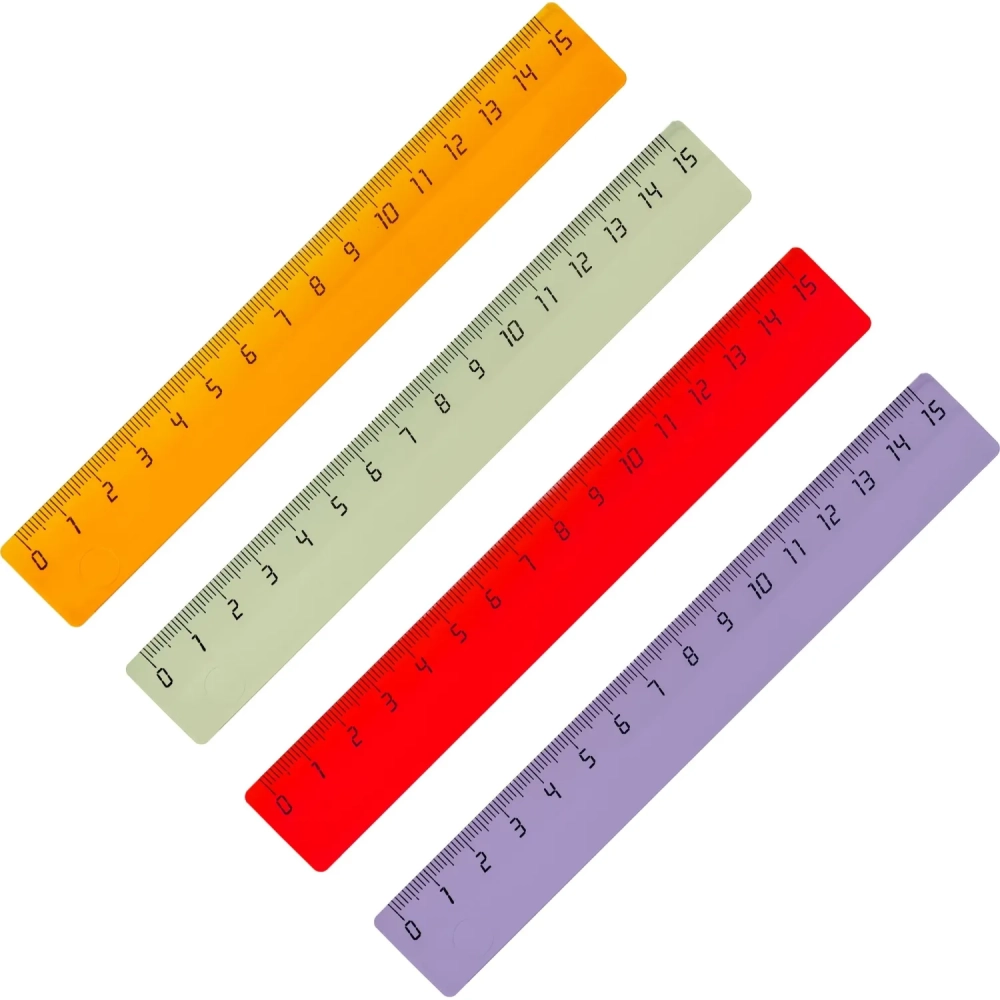 Линейка 15см пластик цвет прозр ассорти (крас,син,зел,оран)