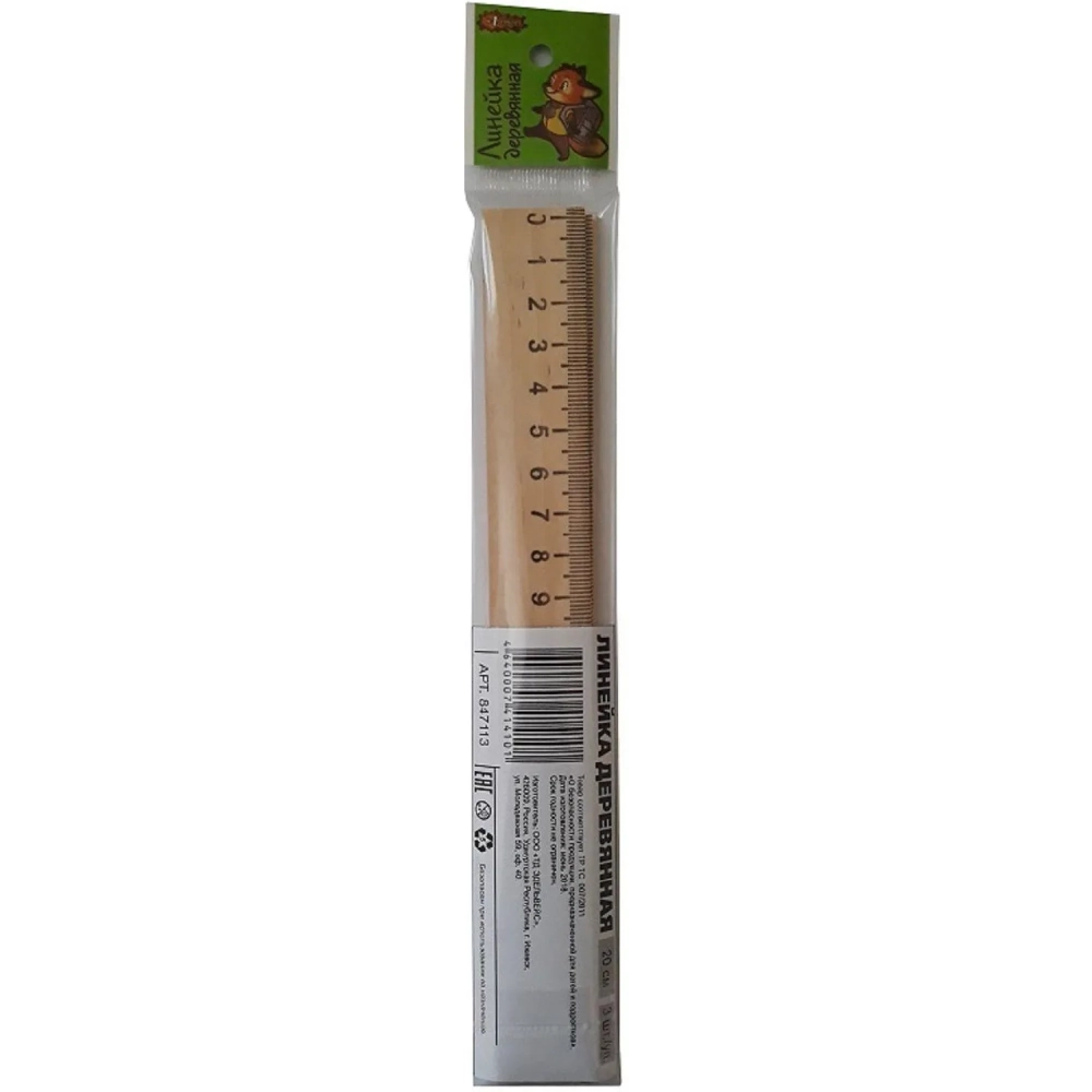 Линейка деревянная 20см 3шт/уп